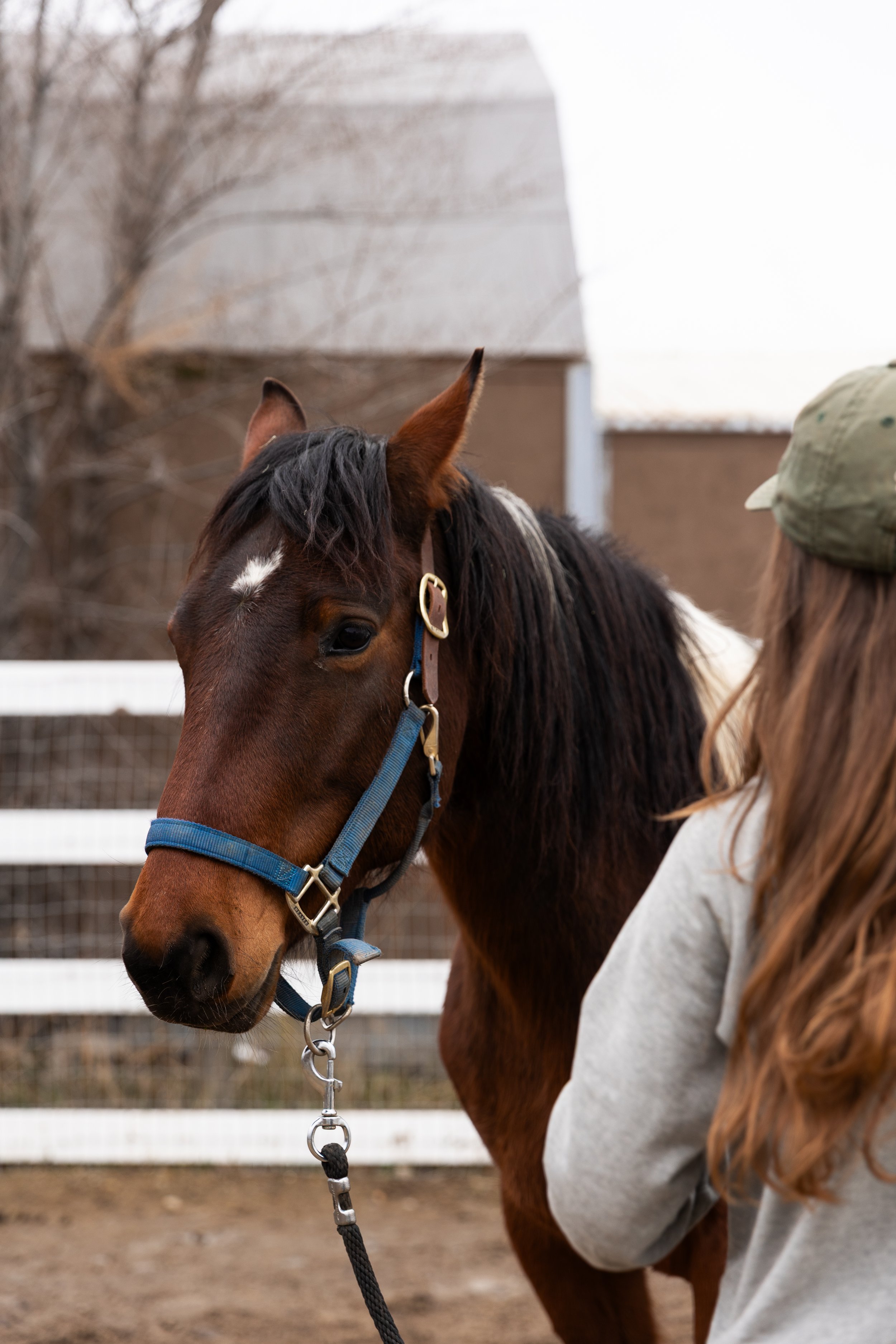 Rescued from Bowie’s Kill Pen by ASIAB, they trusted us to give Cowboy the forever home this sweet senior deserved. Now that he is settled in he is our main restore horse, helping with hands-on work using +R training and emotional regulation.